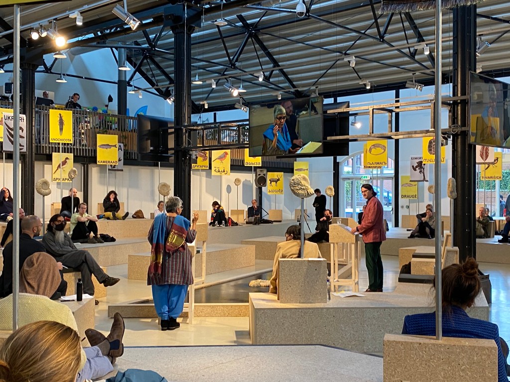Image: A session of Jonas Staal and Radha d’Souza’s Court for Intergenerational Climate Crimes (2021).