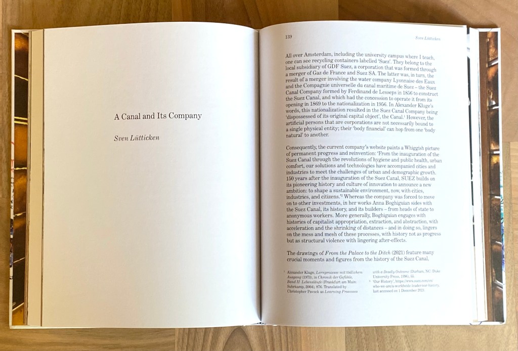 My own contribution focuses on the motif of the Suez Canal in Boghiguian’s work, which triggers a series of reflections on colonialist globalization and corporate deterritorialization, on mimesis and construction, on instrumental reason and artistic research.